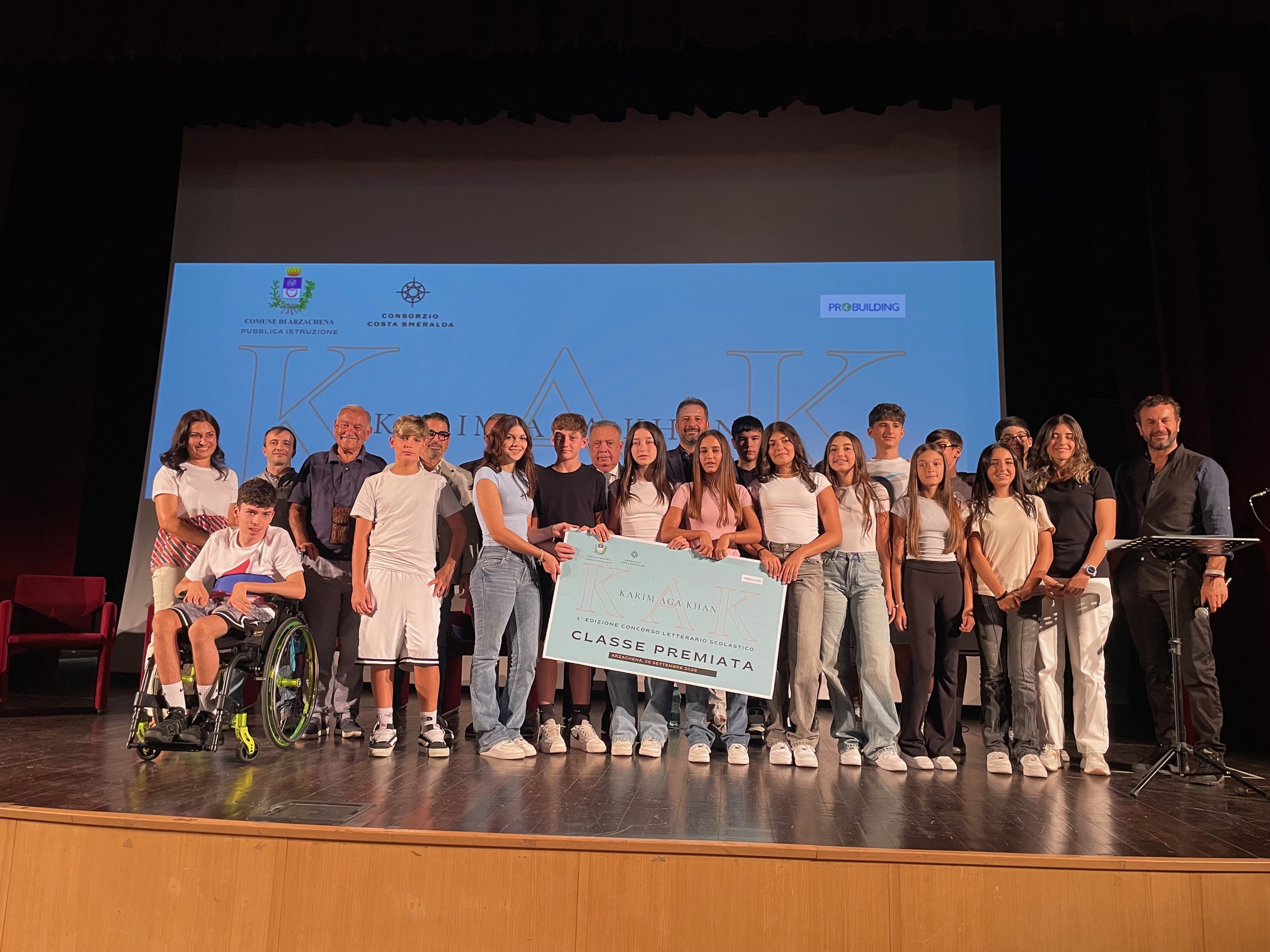 La classe 3^ E della scuola secondaria di primo grado di Arzachena vince la prima edizione del Concorso letterario scolastico Karim Aga Khan con il testo dal titolo “L’Abbracciu”, dietro la guida dell’insegnante Amalia Ciampallari e della dirigente Pinuccia Selis. Durante l'evento un minuto di silenzio per Cinzia Pinna.